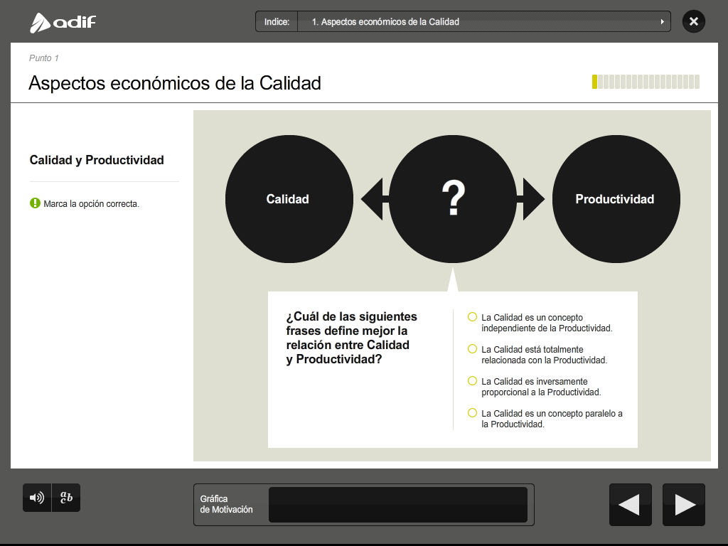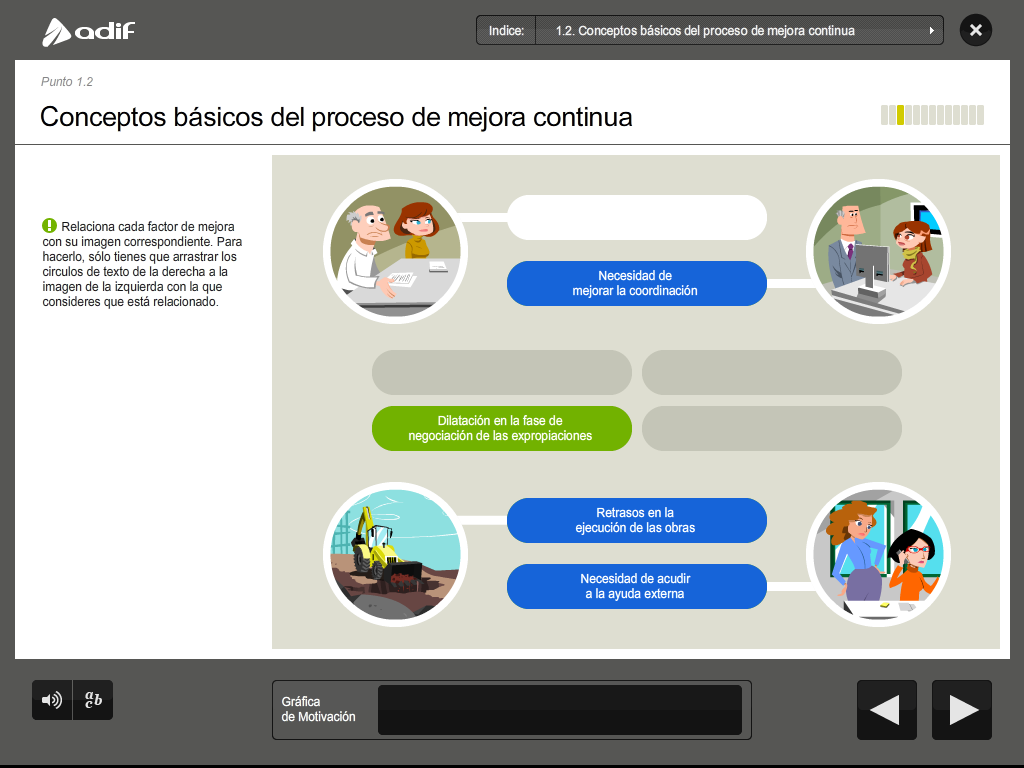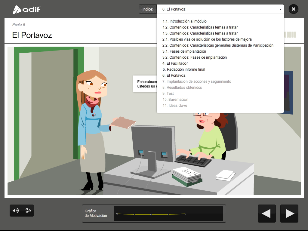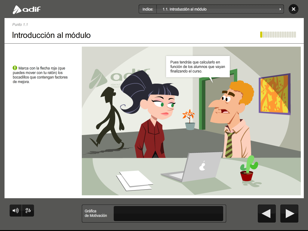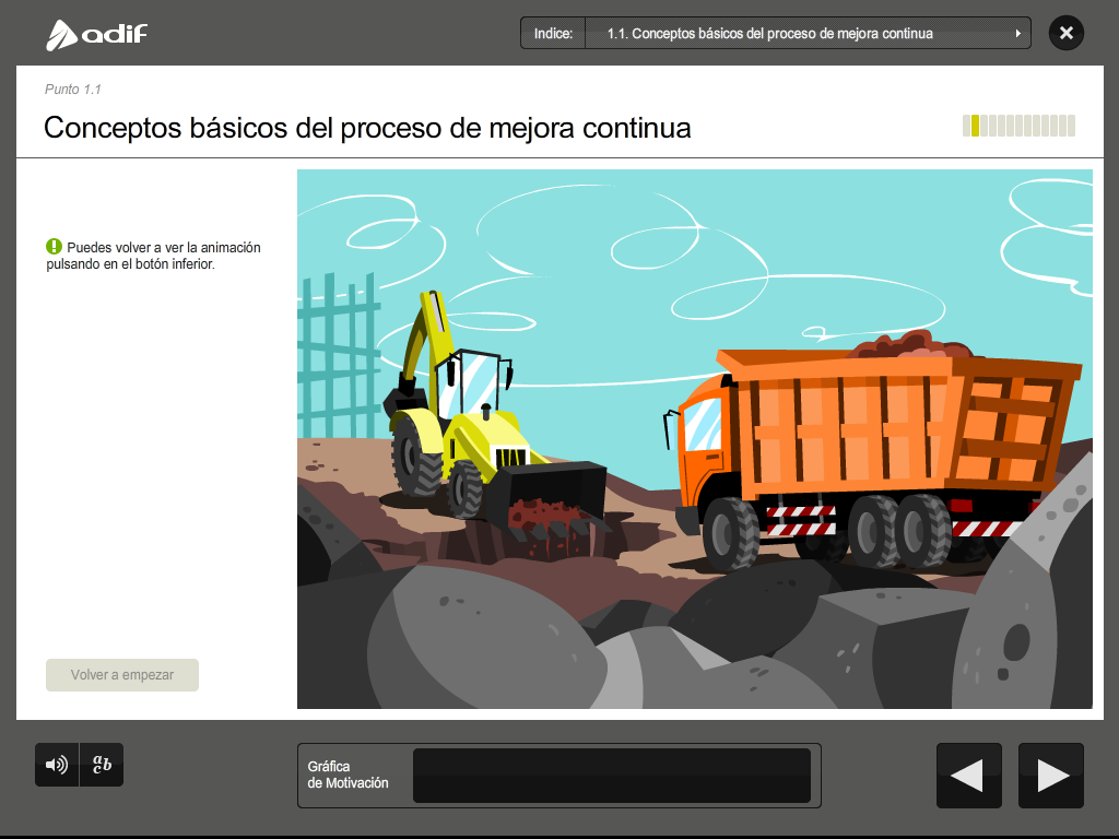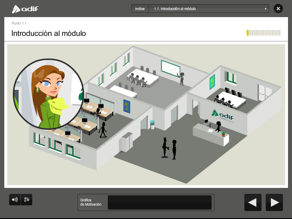 Art direction, graphic design and production of a flash training course for the employees of ADIF (Railway Infrastructure Administrator of Spain).