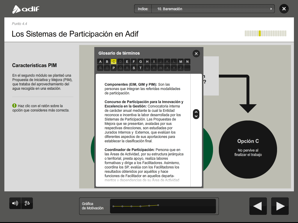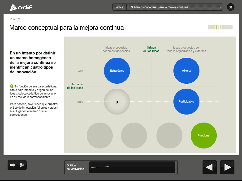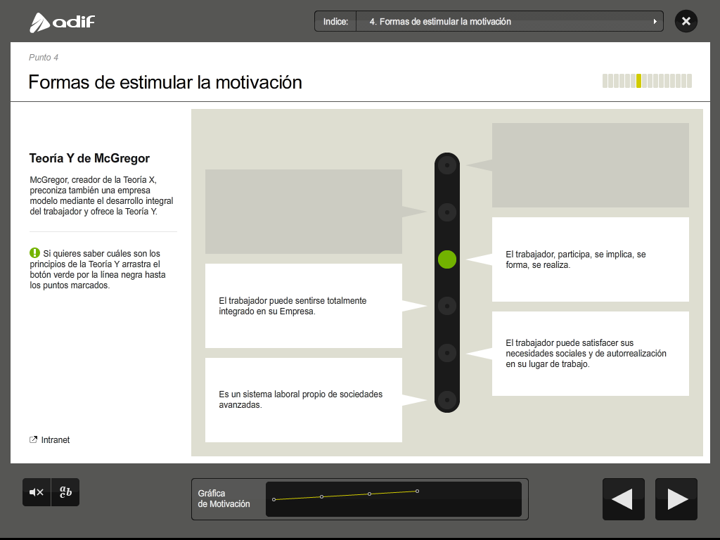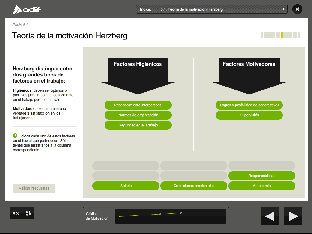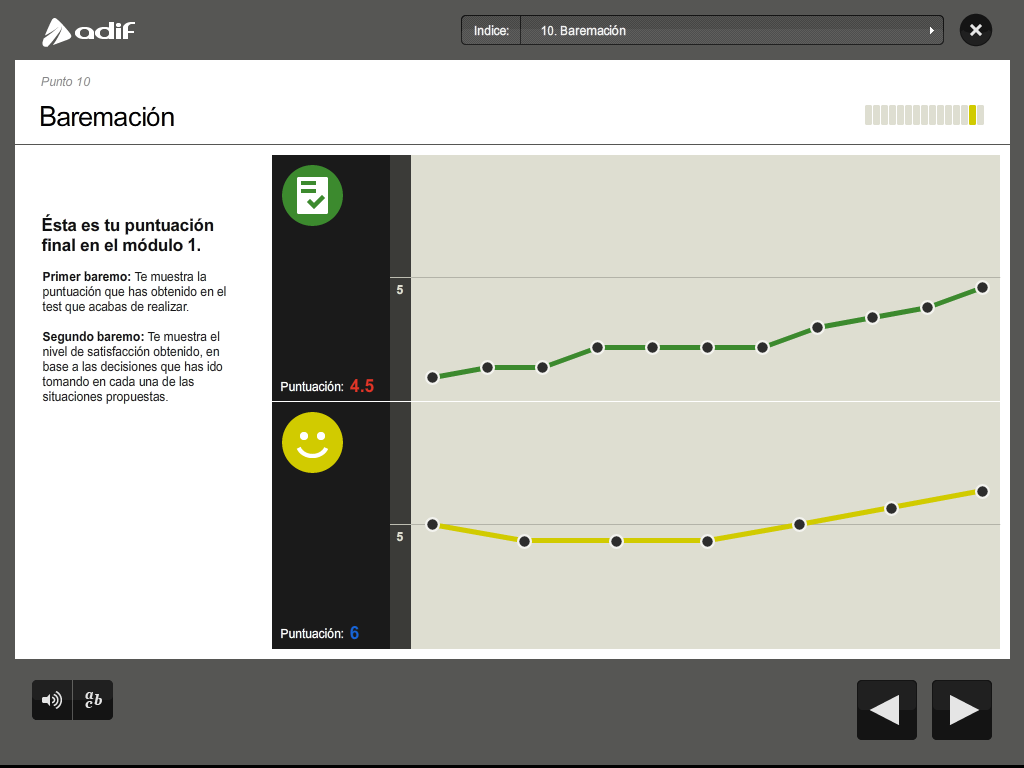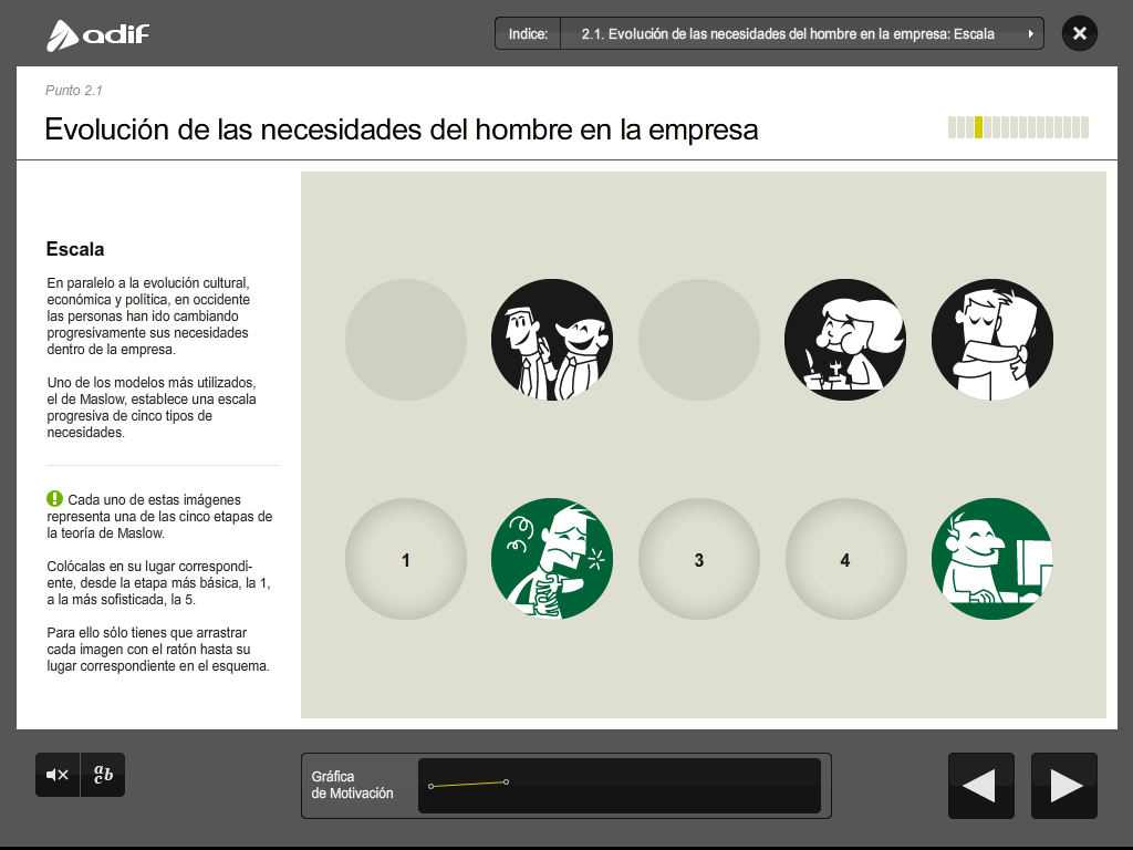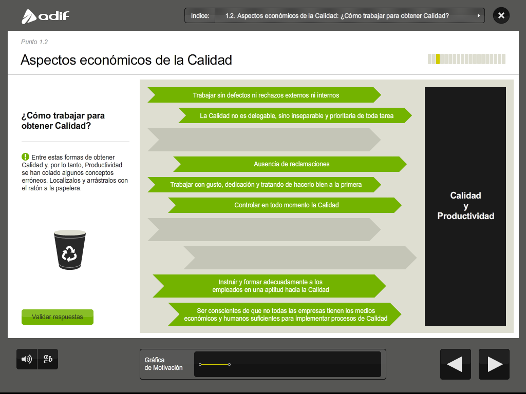 Art direction, graphic design and production of a flash training course for the employees of ADIF (Railway Infrastructure Administrator of Spain).